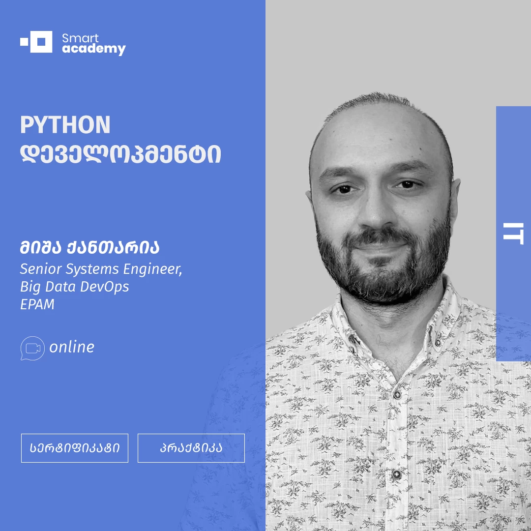 - კურსი გათვლილია როგორც დამწყებთათვის, ასევე მათთვის ვისაც სურს გაიმეოროს Python-ის ძირითადი პრინციპები, აითვისოს პროგრამირებისთვის საჭირო ინსტრუმენტები (GIT) და Python-ის დახმარებით მონაცემთა ბაზებთან კომუნიკაციის პრაქტიკული ილეთები;